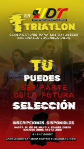 Les recuerda a los jóvenes entre 12 y 19 años que es parte del proceso clasificatorio para conformar la Selección Táchira de Triatlón que nos representará en los próximos Juegos Nacionales Juveniles 2024.