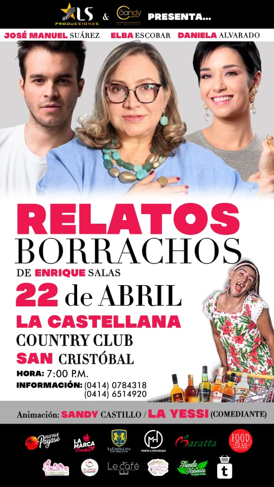 Pensando en el disfrute de los tachirenses, llega la comedia Relatos Borrachos, a la ciudad de San Cristóbal, el próximo 22 de abril.