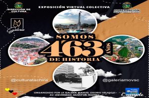 En el marco conmemorativo de la tachiraneidad, la galería Manuel Osorio Velasco dependiente de la Dirección de Cultura de la Gobernación del Táchira extiende la convocatoria a que participen los artistas regionales, nacionales e internacionales para la próxima exposición virtual, llamada «Somos 463 años de historia”, mostrada en las redes sociales del ente adscrito.