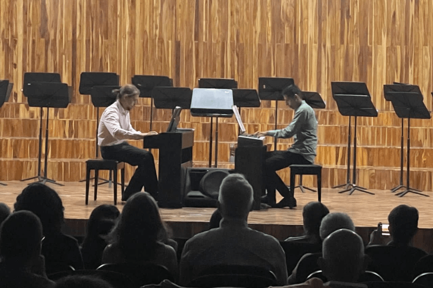 “Fortissimo” además de congregar la aceptación del público asistente, conjugó elementos que llenaron la atmósfera de manera emotiva; Jean Carlos Ochoa y Joel Acevedo se lucieron en dúo con emblemático repertorio ambos intercambiados en un primer y segundo piano, primeramente abrieron con la suite “Los planetas” de Gustav Holst, interpretando Júpiter.