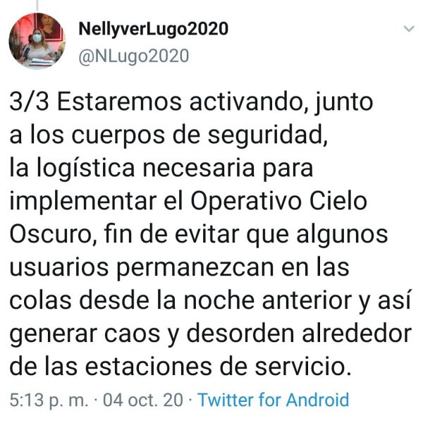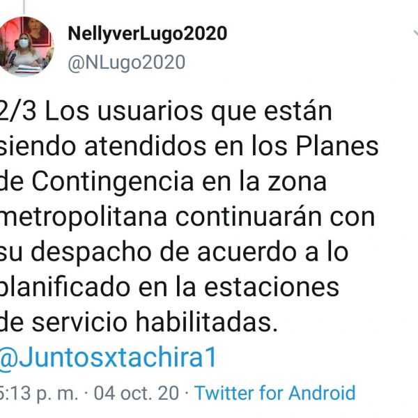 La encargada de la venta de gasolina en Táchira Nellyver Lugo anunció, la forma, manera y pago de combustible en la región. que será discriminado de la siguiente manera: