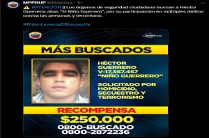 A través de su cuenta en la red social X (antes Twitter), el ministerio difundió los carteles de búsqueda y captura junto con las respectivas recompensas, las cuales oscilan entre 150 mil y 250 mil dólares.