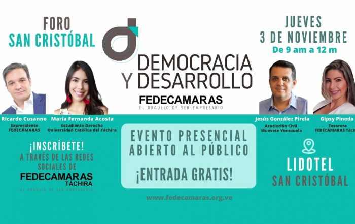 Fedecámaras realizará foro “Democracia y Desarrollo” el 3 de noviembre en San Cristóbal