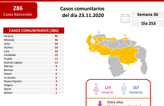 Táchira tiene 33 casos más de covid-19 con el desafortunado saldo de dos fallecidos Día 253 de la lucha contra la COVID-19: Venezuela registra 286 casos comunitarios, 22 importados [...]