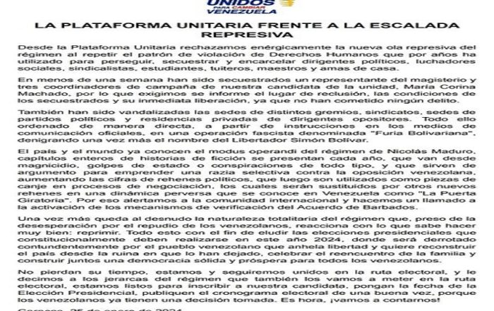 Plataforma Unitaria Democrática denuncia arremetida del gobierno