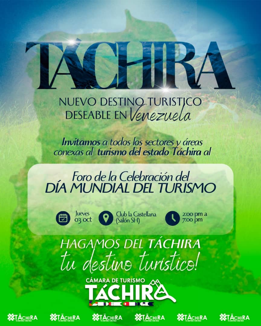 La Cámara de Turismo del Táchira invita a todos los sectores y áreas conexas al turismo al Foro en Celebración del Día Mundial del Turismo «Táchira nuevo destino turístico deseable en Venezuela.»
